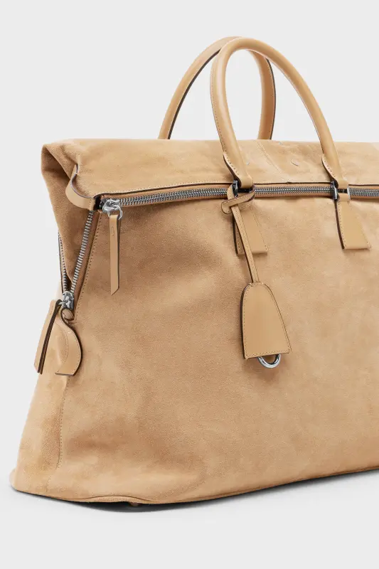 The 5AC Soft XL is crafted in suede leather, amplifying the relaxed silhouette with depth and tactility. Its oversized form folds with movement, framed by structured handles and a detachable strap. The iconic 5AC line takes its name from the French word 'sac' (bag). It explores the Maison’s Anonymity of the lining concept. At the front, four white stitches affirm its signature.