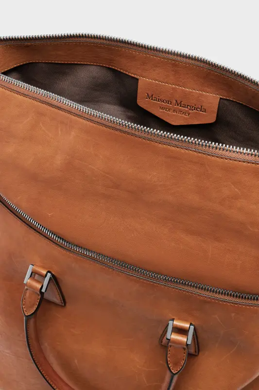Part of the iconic 5AC line – named after the French word sac (bag) – the Loved to Death XL explores the Maison’s Anonymity of the lining concept. Washed, waxed, and finished by hand, its surface carries visible history – evoking the intimacy of timeworn leather. Sculptural lines, clean hardware, and the exposed top zip add definition. A structured top handle adds practicality, while the Maison's numeric artwork and four stitches reference its signature.