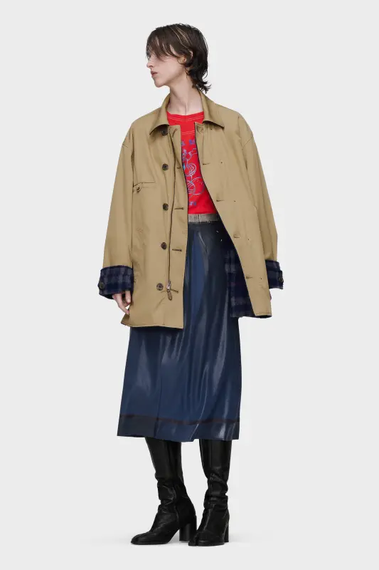 This cotton T-shirt recalls vintage Americana with a collegiate sports motif at the chest. Contrast stitching reinforces its relaxed cut, amplifying the retro spirit. At the back, the Maison’s signature four stitches appear; the opposite of a label.