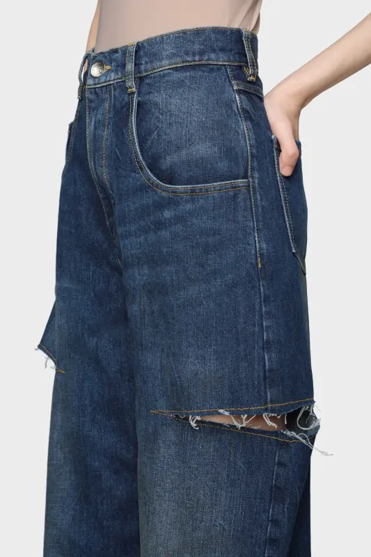 Maison Margiela CUTOUT DENIM TROUSERS Washed indigo