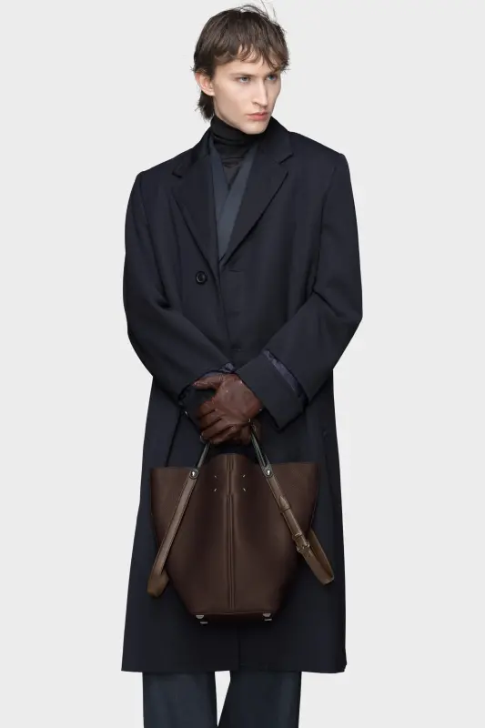 The Maison launches the Dress-age handbag for SS25, crafted from soft pebbled calfskin. With an equestrian spin, the medium handbag features classic leatherwork and refined lines, combining unconscious glamour with gestural design. It follows a trapezoid shape with contrast dual-wear strap detail. The studded base allows the bag to stand, and the inner is adorned with the logo. Maison Margiela's signature, the four stitches, appear at the back; the opposite of a label.