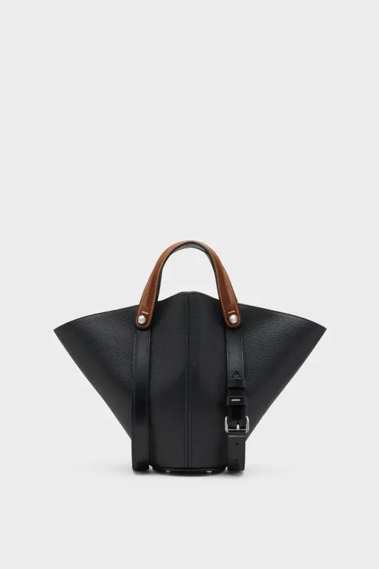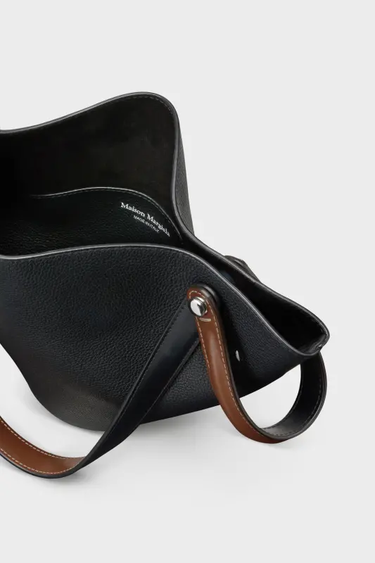 The Maison launches the Dress-age handbag for SS25, crafted from soft pebbled calfskin. With an equestrian spin, the small handbag features classic leatherwork and refined lines, combining unconscious glamour with gestural design. It follows a conical shape with contrast dual-wear strap detail. The studded base allows the bag to stand, and the inner is adorned with the logo. Maison Margiela's signature, the four stitches, appear at the back; the opposite of a label.