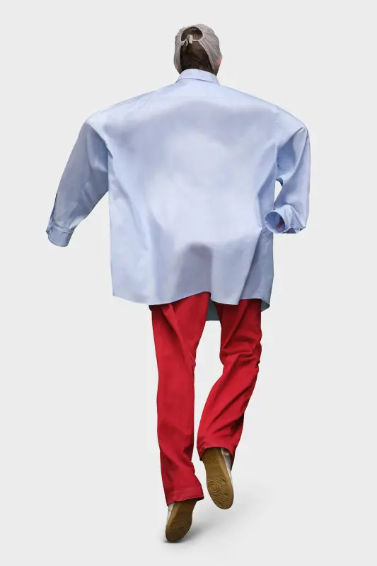 A classic shirt in cotton poplin, with a collar, buttoned placket and chest pocket. At the back, four white stitches show the hand of the Maison: the opposite of a label.