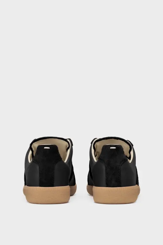 The Replica sneakers in nappa leather and suede with a honey sole. The Maison's iconic Replica sneakers are inspired by Austrian sports shoes from the seventies. Details on the Replica pairs are continually reworked in line with the season's inspirations.