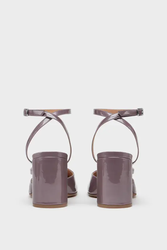 Crafted from glossy patent leather, the cut-out sandals feature an 8cm cylindrical heel, adjustable ankle strap and the Tabi split-toe shape, inspired by the traditional 15th century Japanese sock bearing the same name – launched for the Maison's debut collection in 1989. It captures the avant-garde and insubordinate spirit of the Maison and exists as a heritage classic, continually explored through each collection. Maison Margiela's signature stitch appears at the back; the opposite of a label.