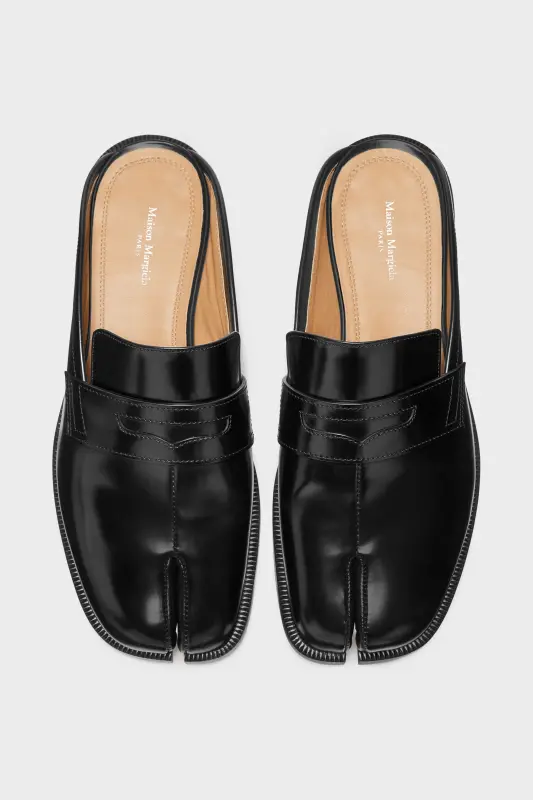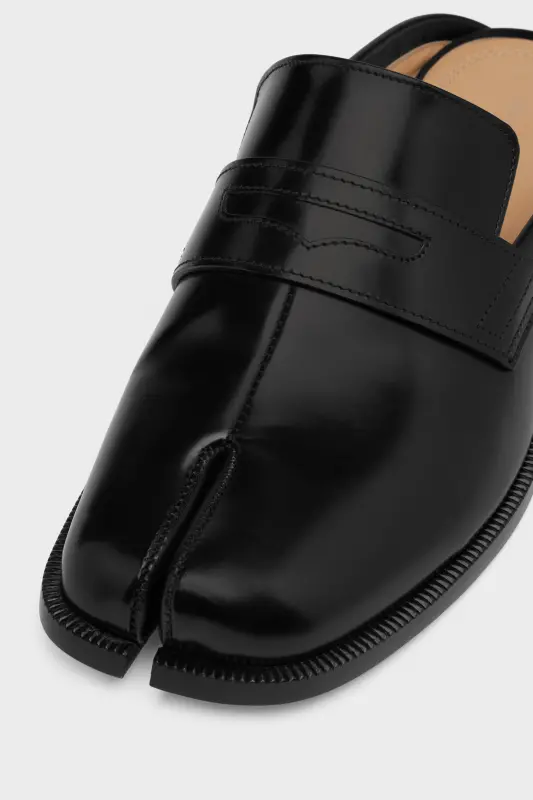 Maison Margiela Womens Black Leather Tabi City Loafer Mules Black