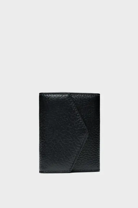 Envelope wallet with an accordion style inner, open sections and card slots. The Maison Margiela logo appears on the inside and the contrast four-stitches adorns the back.