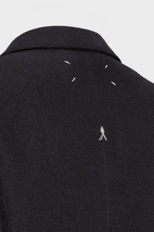 Inspired by classic gentleman's outerwear, the woven long coat in a linen and wool blend has an oversized silhouette lending a gesture of louche style. Contrast Work-in-progress stitches can be seen throughout, with a back belt and inverted box pleat, double-breasted front and flap pockets. Maison Margiela's signature, the four stitches, appear at the back; the opposite of a label.