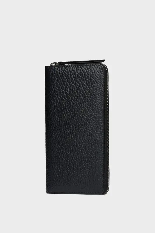 Crafted from embossed grainy leather, the zip-around wallet has an inner zipped coin purse and card holders, with inner numeric logo. Maison Margiela's signature, the four stitches, appear at the back; the opposite of a label.